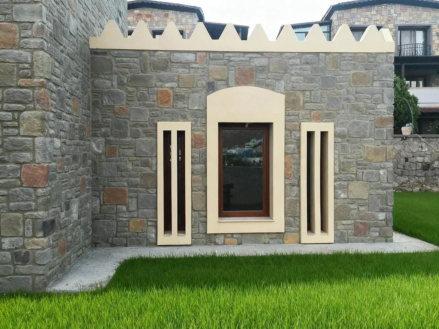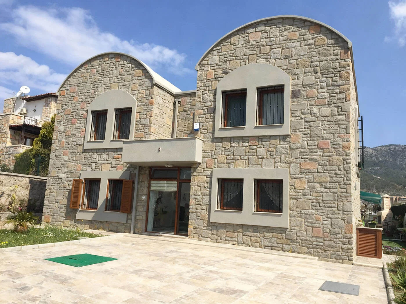 Proje Detayları Ortakent mahallesinde bulunan yapının dış cephesi kültür taşı ile imal edilmiştir. Proje Türü: Özel villa Proje Sahibi: Saliha Başer Konum: Ortakent / Bodrum Yapı Alanı: 285 m2 Yapım Yılı: 2015-2016 Previous Project Next Project